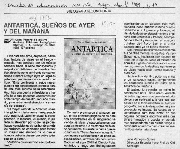 Antártica, sueños de ayer y del mañana [artículo] Julia Venegas Quiroz.