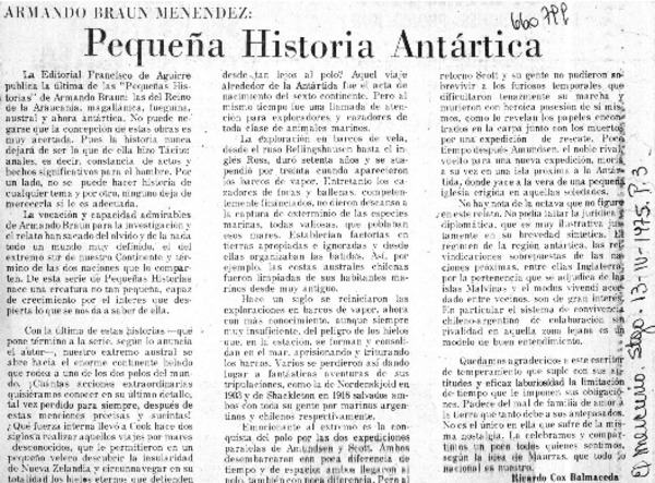 Pequeña historia antártica [artículo] Ricardo Cox Balmaceda.