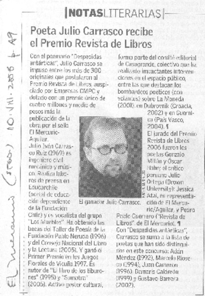 Poeta Julio Carrasco recibe el Premio Revista de Libros [artículo]