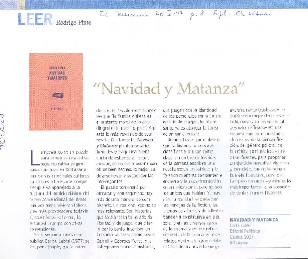 La notable novela de Labbé: Navidad y Matanza [artículo]Esteban Valenzuela Van Treek.