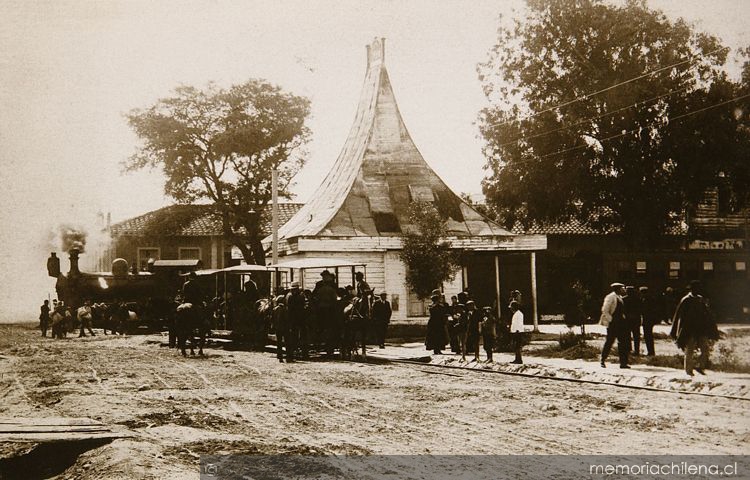 Estacion Ferrocarril. Concepcion. Chile : [Hotel de France, Botica y Droguería "El Sol", y el Hotel "Cosmopolita"] [fotografía] Juan M. Sepúlveda V..