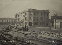 Álbum que muestra trabajos relativos a la instalación de rieles en el centro de Santiago.