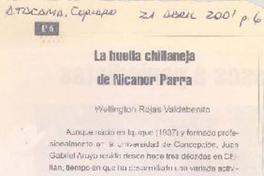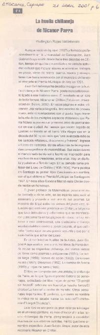 La huella chillaneja de Nicanor Parra [artículo] Wellington Rojas Valdebenito Atacama abr. 21, 2001, p. 6 .
