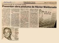 Potrerillos del 50: Los grandes cambios. Presentan obra póstuma de Héctor Maldonado [artículo]. Chañarcillo (Diario : Copiapó, Chile) mayo 24, 2006, p. 2 .