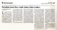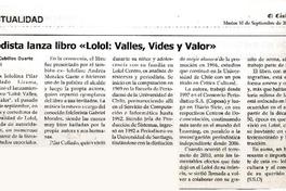 Periodista lanza libro "Lolol: valles, vides y valor" [artículo] / Leopoldo Cubillos Duarte. El Cóndor (Diario : Rancagua, Chile)-- sept. 10, 2013, p. 8. .