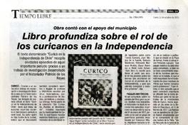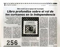 Libro profundiza sobre el rol de los curicanos en la Independencia [artículo] / Carlos Arias. El Centro (Diario : Talca, Chile)-- oct. 22, 2012, p. 23. .