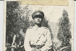 Ernesto Lemus Oyanedel sosteniendo su arma de servicio [Fotografía].