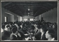 Comedor central del complejo para trabajadores de la Hacienda San Vicente : Hugo Jordán Guerra [Fotografía]. Chile : [Editor no identificado] , [1953]. 1 Fotografía : Formato digital. .