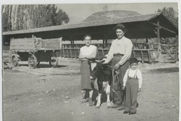 Habitantes de la Hacienda San Vicente en criadero de animales : Inés Ferrada, Aurelio Ponce, Julio Ponce. [Fotografía]. Chile : [Editor no identificado] , 1959 1 Fotografía : Formato digital. .