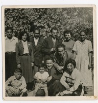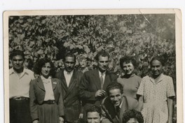 Fotografía familiar : Emilia Tapia, Fernando Casanova, Nelson Castillo, Manuel Urbina, Luis Salinas, Rosa Alfaro [Fotografía]. Chile : [Editor no identificado] , 1955. 1 Fotografía : Formato digital. .