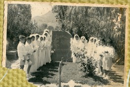 Niños y niñas el día de su primera comunión visitando la tumba de doña Rosa Squella de Jordán [Fotografía]. Chile : [Editor no identificado] , [19--]. 1 Fotografía : Formato digital. .