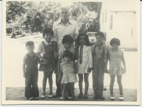 [Don Atilio Gallardo junto a sus nietos y sobrinos : Lorena Lemus, Pilar Lemus, German Carvacho, Viviana Delgado, Maritsa Delgado, Marcelo Delgado, Loreto Gallardo] [Fotografía]. Chile : [Editor no identificado] , [1974]. 1 Fotografía : Formato digital. .