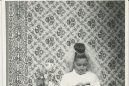 Recuerdo de primera comunión de Cecilia Contreras Vergara [Fotografía]. Chile : [Editor no identificado] , 1964. 1 Fotografía : Formato digital. .