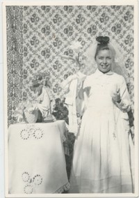 Recuerdo de la Primera Comunión de Cecilia Contreras Vergara [Fotografía]. Chile : [Editor no identificado] , 1964. 1 Fotografía : Formato digital. .