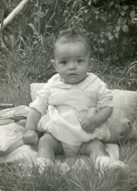 Cecilia del Carmen Contreras Vergara en jardín de Pocuro [Fotografía]. Chile : [Editor no identificado] , 1954. 1 Fotografía : Formato digital. .