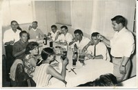 Amigos de San Vicente: Armando Guzmán, Carlos Toro, Martín Valenzuela, Juan Gallardo, hugo Molina, Pascuala Baeza [Fotografía]. Chile : [Editor no identificado] , [1967]. 1 Fotografía : Formato digital. .