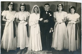Novios y damas de honor : Clorinda Dureaux, Nena Montenegro, Regina Dureaux, Amador Montenegro, Clotilde Dureaux, María Dureaux [Fotografía]. Chile : [Editor no identificado] , 1944 1 Fotografía : Formato digital. .