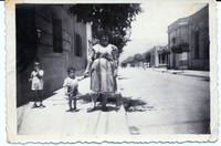 Familia en Calle Larga : Ernestina Reinoso, Carmen Muñoz, Ricardo Muñoz [Fotografía]. Chile : [Editor no identificado] , 1958. 1 Fotografía : Formato digital. .