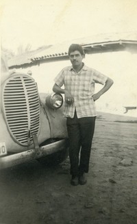 Hombre y su automóvil [Fotografía]. Chile : [Editor no identificado] , [19--]. 1 Fotografía : Formato digital. .