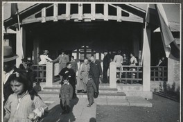 Habitantes y autoridades en el complejo para trabajadores de la Hacienda San Vicente [Fotografía]. Chile : [Editor no identificado] , [1954]. 3 Fotografías : Formato digital. .