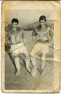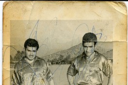 Jugadores de fútbol del Club Deportivo Pocuro : Bernardo Berríos Rodríguez, Hernán Berríos Rodríguez [Fotografía]. Chile : [Editor no identificado] , 1963. 2 Fotografías : Formato digital. .