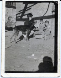 Familia Salinas Salinas : Cupertino Salinas Salinas, Anita Salinas, Juan Salinas, "Toki" [Perro] [Fotografía]. Chile : [Editor no identificado] , 1968. 2 Fotografía : Formato digital. .