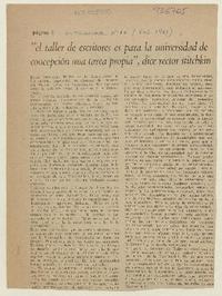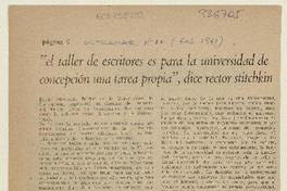 "El Taller de Escritores es para la Universidad de Concepción una tarea propia", dice Rector Stitshkin [artículo]. Ultramar (Santiago, Chile)-- no. 10 (feb. 1961) p. 6. .