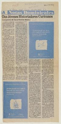 Dos jóvenes historiadores curicanos [artículo] / Oscar Ramírez Merino. La Prensa (Curicó). -- ago. 15, 1993, p. 1 (suplemento) retr. .