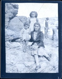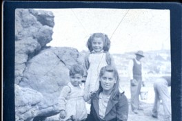 Mujer y dos niños en una playa de [Cartagena] [fotografía]. [Chile] : [entre 1930 y 1940]. 1 fotografía : negativo sobre papel ; 9 x 7 cm. .