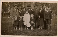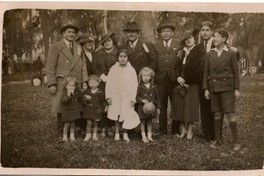 Grupo familiar, compuesto por adultos, niños pequeños y jovenes, son retratados en el Parque Cousiño.
