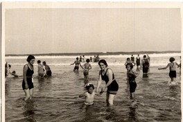 [Madre e hija en [playa chica de Cartagena] [fotografía]. [Chile] : [entre 1920 y 1930]. 1 fotografía : monocromo, gelatina sobre papel fibra ; 9 x 12 cm. .