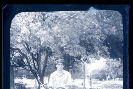 [Joven en plaza Vergara apoyado en su bicicleta] [fotografía]. [Viña del Mar, Chile] : [entre 1940 y 1950]. 1 fotografía : negativo sobre papel ; 9 x 7 cm. .