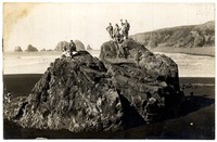 [Personas en roquerío de balneario de Constitución] [fotografía]. Constitución : [1920?]. 1 fotografía : monocromo, gelatina sobre papel fibra ; 9 x 14 cm .