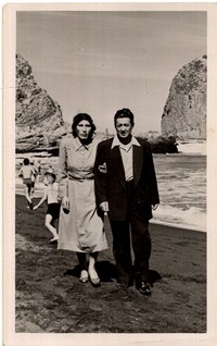[Mujer y hombre en balneario de Constitución] [fotografía]. Constitución : 1951. 1 fotografía : monocromo, gelatina sobre papel fibra ; 14 x 9 cm .