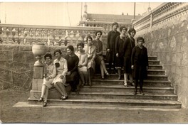 [Mujeres posando en fila en una escalera] [fotografía]. Pichilemu : [entre 1920 y 1930]. 1 fotografía : monocromo, gelatina sobre papel fibra ; 9 x 14 cm .