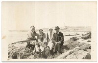 [Grupo de personas en roquerío de balneario de Pichilemu] [fotografía]. Pichilemu : [entre 1920 y 1930]. 1 fotografía : monocromo, gelatina sobre papel fibra ; 9 x 14 cm .