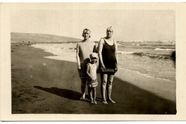[Mujeres y niña en un balneario] [fotografía]. Pichilemu : [entre 1920 y 1930]. 1 fotografía : monocromo, gelatina sobre papel fibra ; 9 x 14 cm .