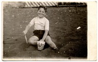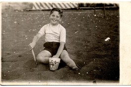 [Niño con balde en la arena de balneario de Pichilemu] [fotografía]. Pichilemu : [entre 1930 y 1940]. 1 fotografía : monocromo, gelatina sobre papel fibra ; 9 x 14 cm .