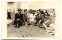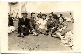 [Grupo de personas en balneario de Pichilemu] [fotografía]. Pichilemu : [entre 1930 y 1940]. 1 fotografía : monocromo, gelatina sobre papel fibra ; 9 x 14 cm .