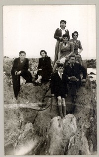 [Familia en roquerío de balneario en Pichilemu] [fotografía]. Pichilemu : [entre 1930-1940]. 1 fotografía : monocromo, gelatina sobre papel fibra ; 14 x 9 cm .