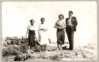 [Grupo de personas en roquerío de un balneario] [fotografía]. Pichilemu : 1934. 1 fotografía : monocromo, gelatina sobre papel fibra ; 9 x 14 cm .
