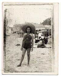 Muchacha en traje de baño y sombrero en un balneario de la ciudad nortina [fotografía]. Antofagasta, Chile : 193-?]. 1 fotografía : monocromo, gelatina sobre papel fibra ; 9 x 7 cm. .