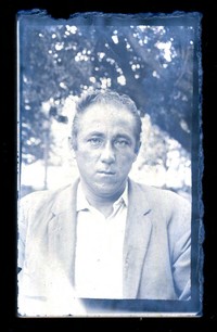 [Retrato de hombre con camisa y chaqueta en plaza Vergara] [fotografía] / [Fotografía de Luis Juica]. [Viña del Mar, Chile : entre 1930 y 1950]. 1 fotografía : negativo ; 7 x 4 cm. .