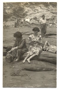 [Mujeres en roquerío de un balneario de Cobquecura] [fotografía]. Cobquecura : entre 1940 y 1959]. 1 fotografía : monocromo, gelatina sobre papel fibra ; 14 x 9 cm. .