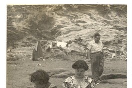 [Mujeres en roquerío de un balneario de Cobquecura] [fotografía].
