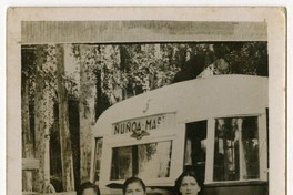[Mujer y jovenes a un costado de micro del recorrido Ñuñoa Masur] [fotografía]. Santiago : entre 1920 y 1930]. 1 fotografía : monocromo, gelatina sobre papel fibra ; 14 x 9 cm. .