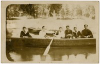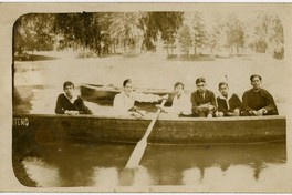 [Jovenes en un bote en la laguna de la Quinta Normal] [fotografía].