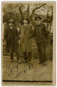 [Hombres de civil y uniformado de la Marina en Iquique] [fotografía]. Iquique : 1924. 1 fotografía : monocromo, gelatina sobre papel fibra ; 13 x 9 cm. .