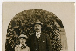[Hombre y niño en la Plaza Condell de Iquique] [fotografía]. Iquique : 1925. 1 fotografía : monocromo, gelatina sobre papel fibra ; 14 x 9 cm. .