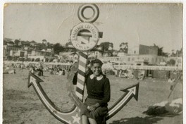 [Muchacha sentada en una (imitación) de ancla en balneario de Cartagena] [fotografía].